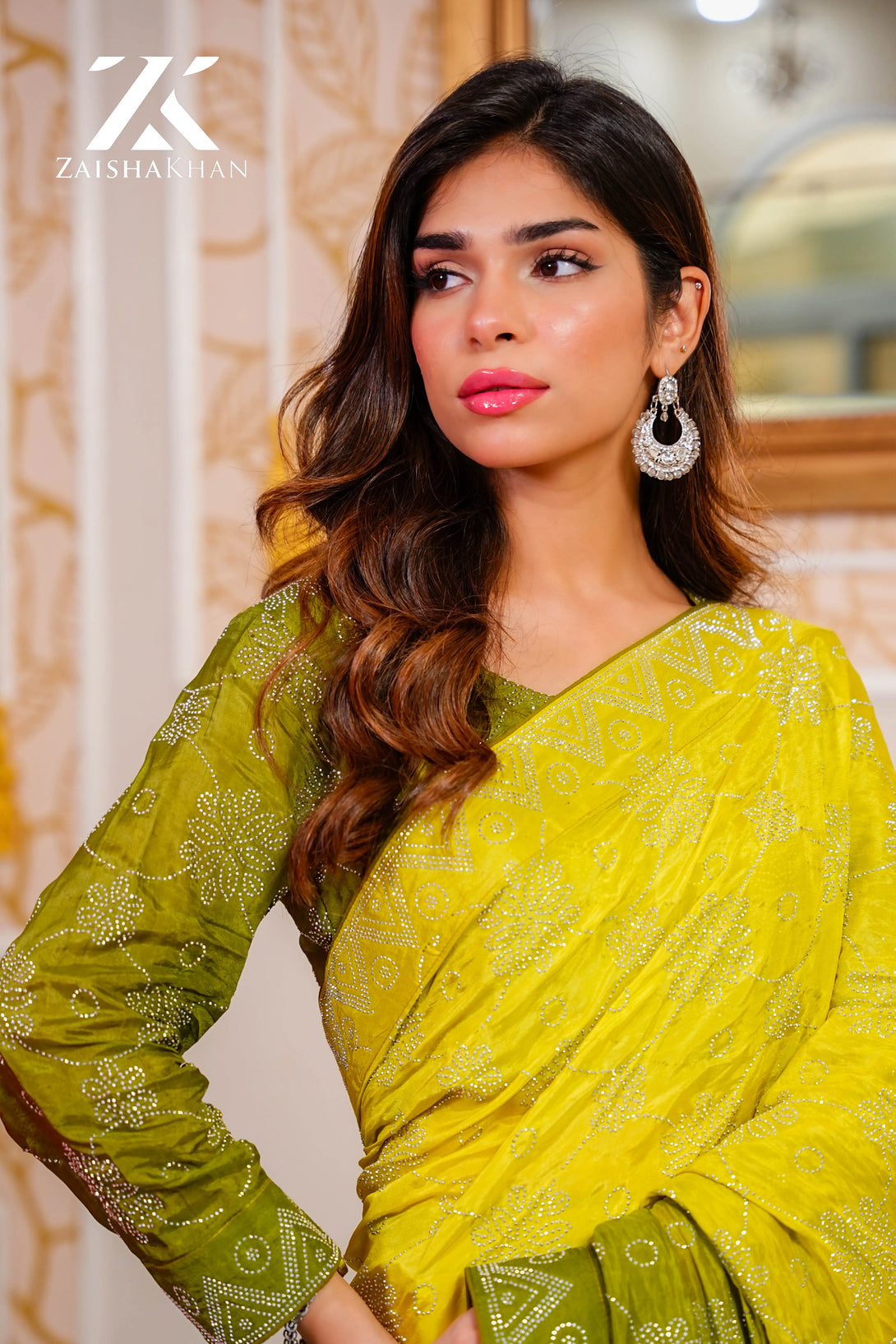 Saree Work: Silver Rhinestones